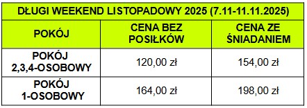 CENNIK DŁUGI WEEKEND LISTOPADOWY 2025
